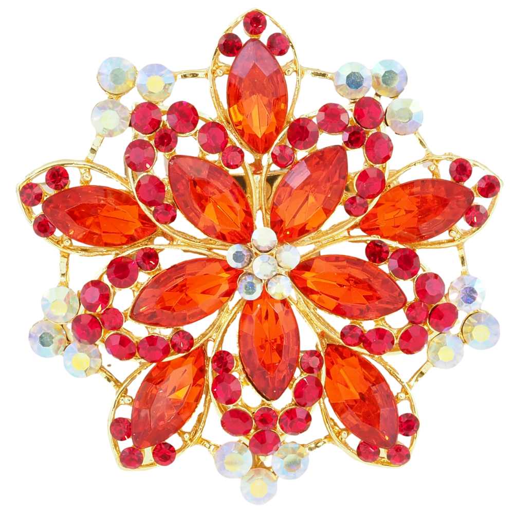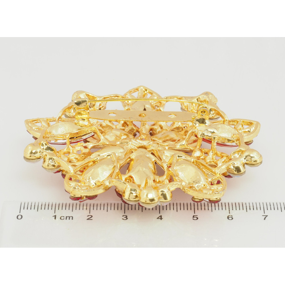 Брошь Цветок с красными стразами