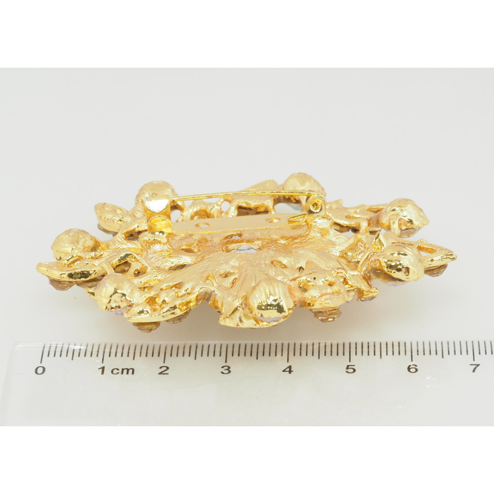 Брошь Цветок с золотистыми стразами
