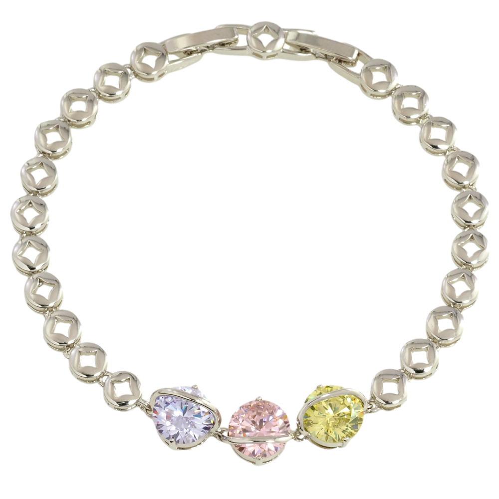 Браслет Xuping Родий Три разноцветных фианита размер с доп.замком 17,18.5см х 5мм