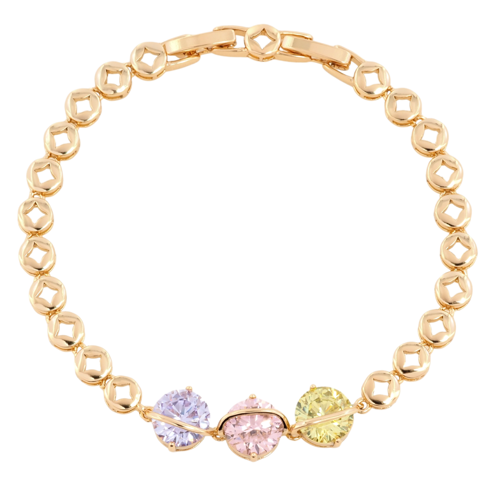 Браслет Xuping Позолота 18K Три разноцветных фианита размер с доп.замком 17,19см х 5мм