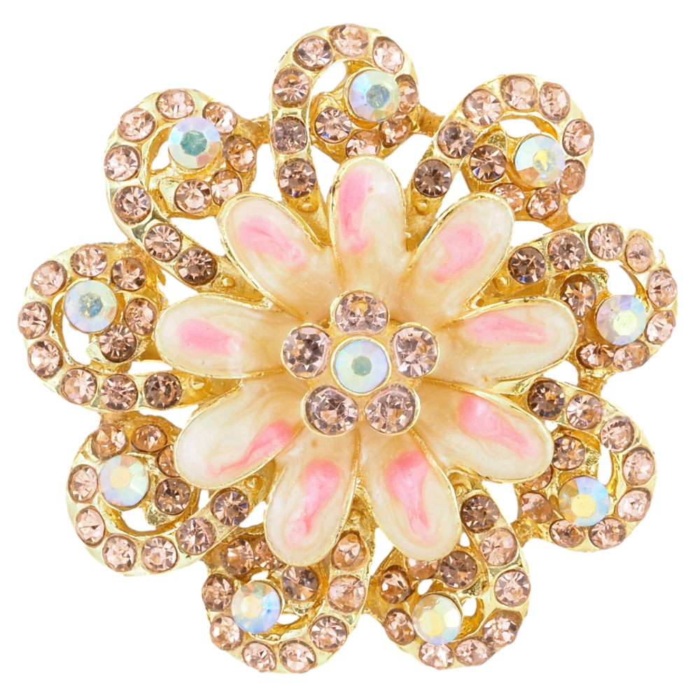 Брошь Цветок с розовыми стразами и эмалью