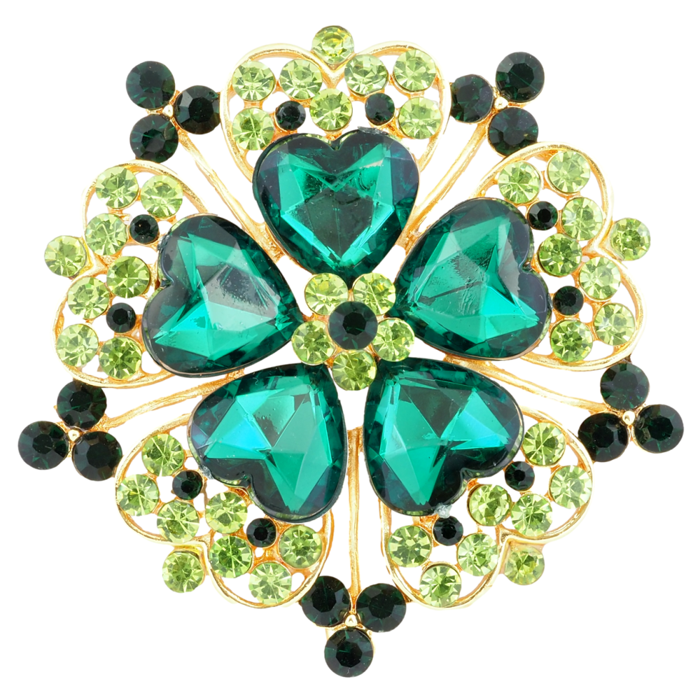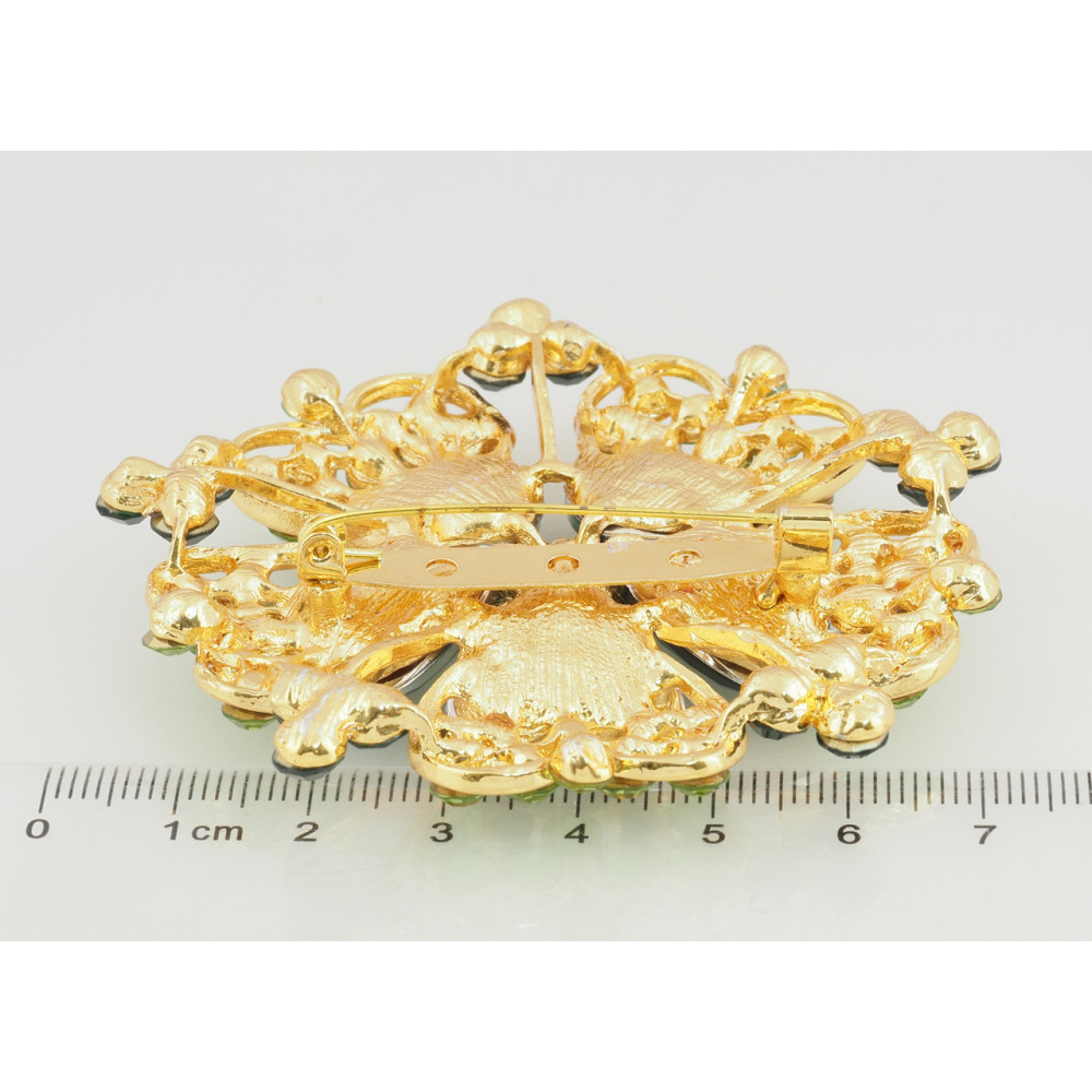 Брошь Цветок с зелеными стразами