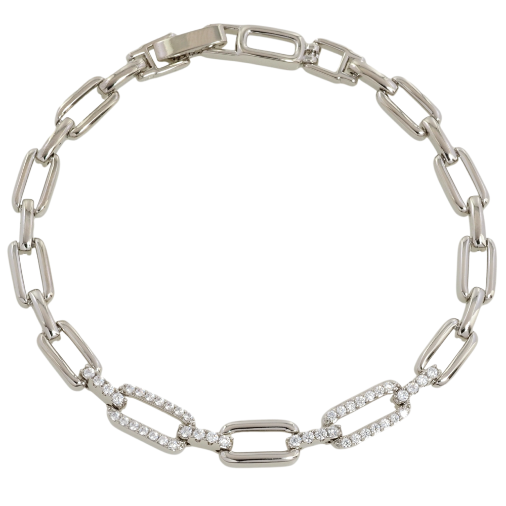 Браслет Xuping Родий Звенья с цирконием размер 19.5см х 6мм