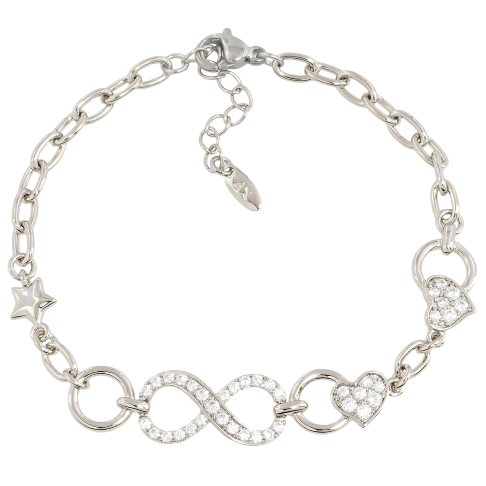 Браслет Xuping Родий Бесконечность с сердечками размер с доп. цепочкой 18-21.5см х 4мм