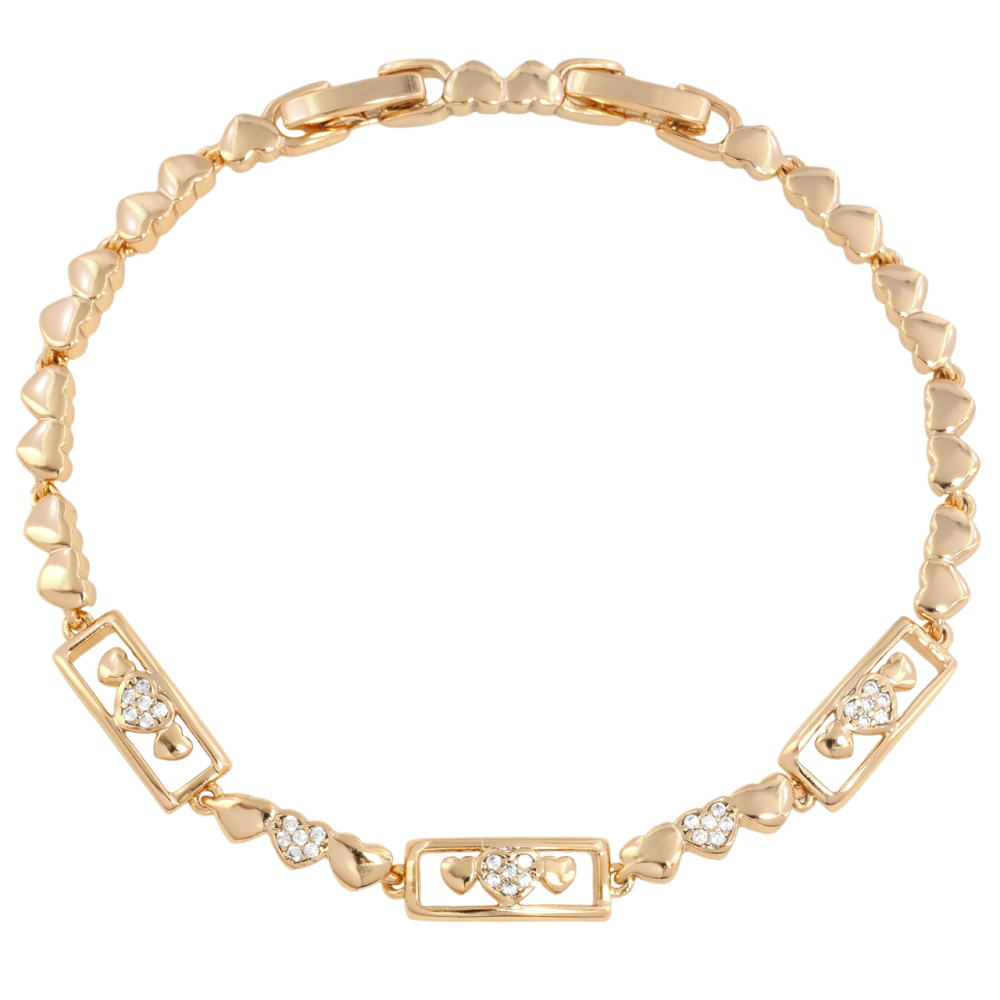 Браслет Xuping Позолота 18K Сердечки с цирконием размер с доп. замком 17,19см х 4-6мм