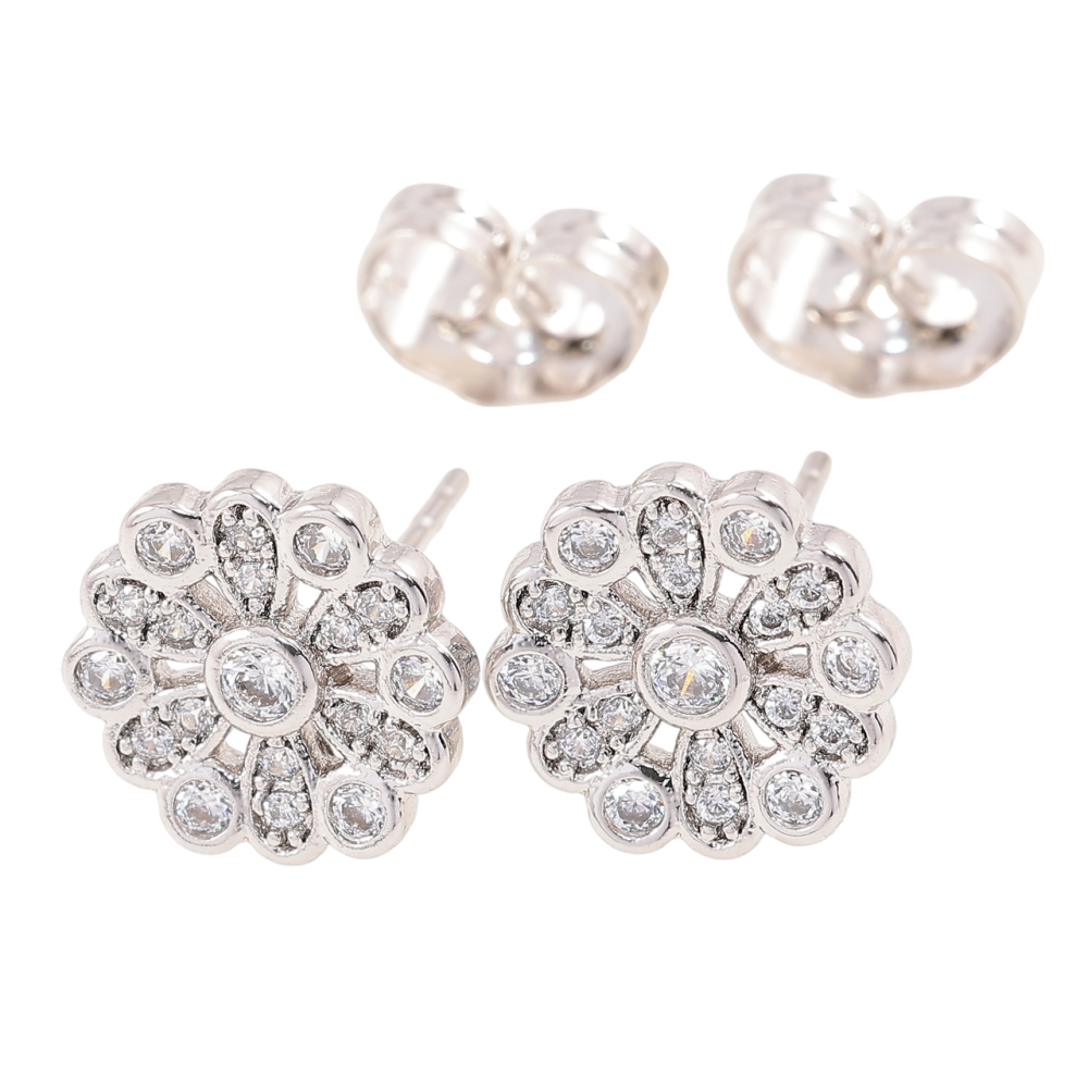 Серьги Xuping Родий пусеты Цветочки с цирконием