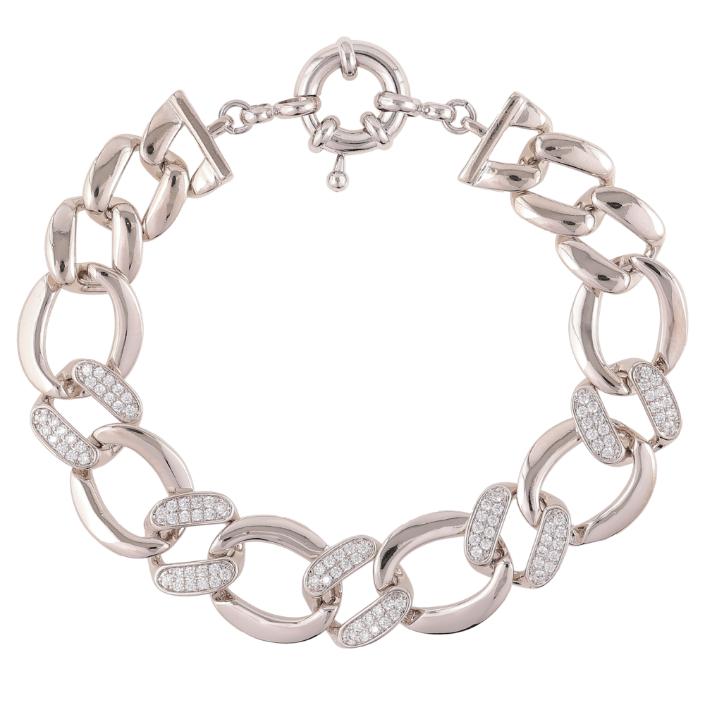 Браслет Xuping Родий Звенья цепочки с цирконием размер 19см х 12-14мм