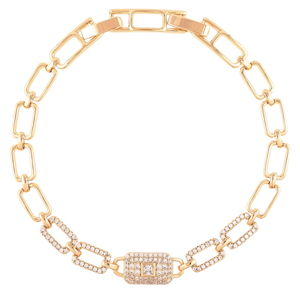 Браслет Xuping Позолота 18K Звенья с цирконием размер с доп. замком 17.5,19.5см х 6мм