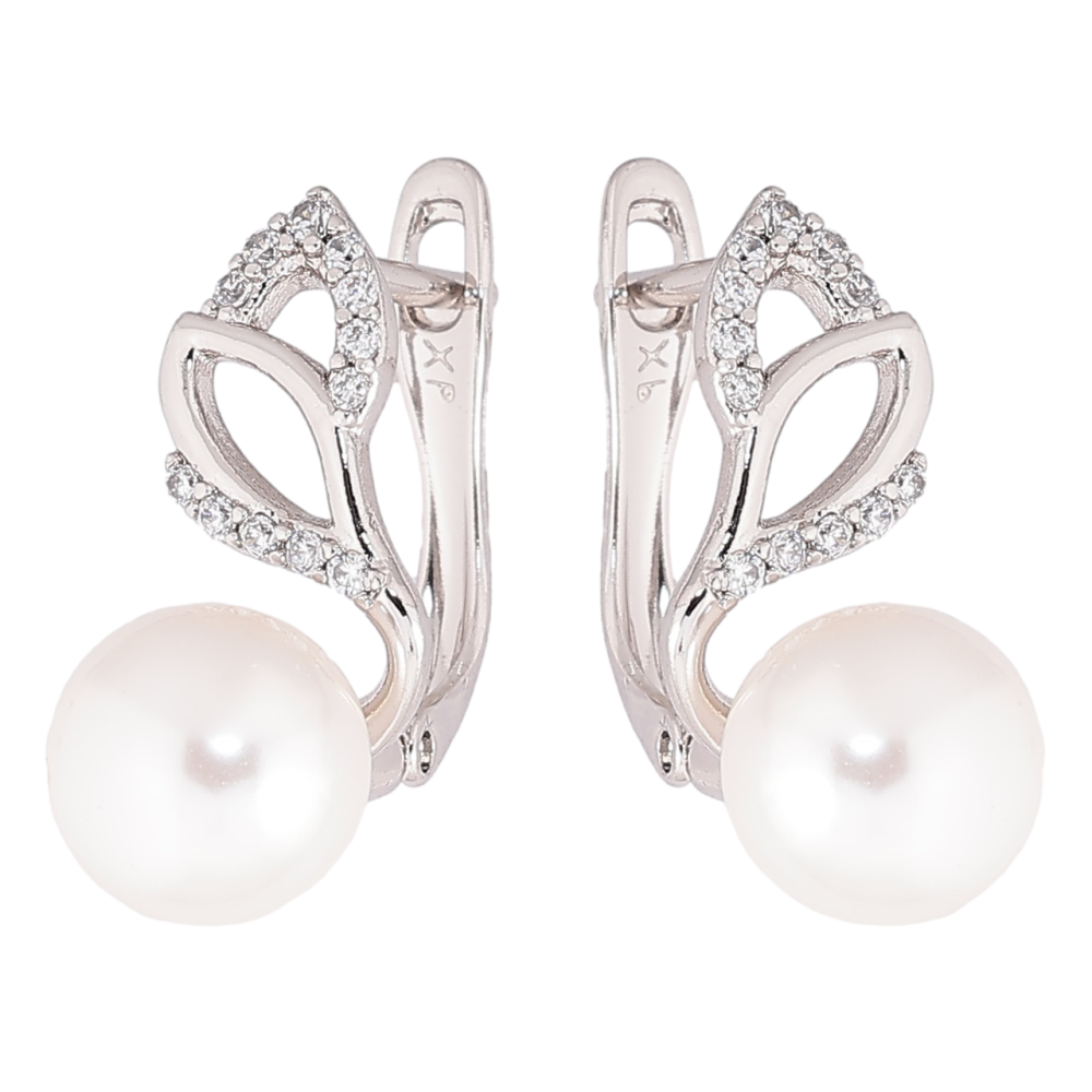 Серьги Xuping Родий английский замок Жемчужные бутоны