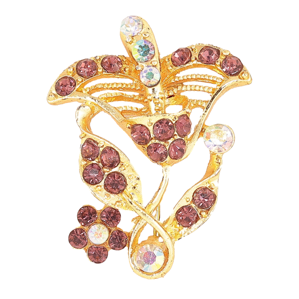 Брошь Цветок с бордовыми стразами