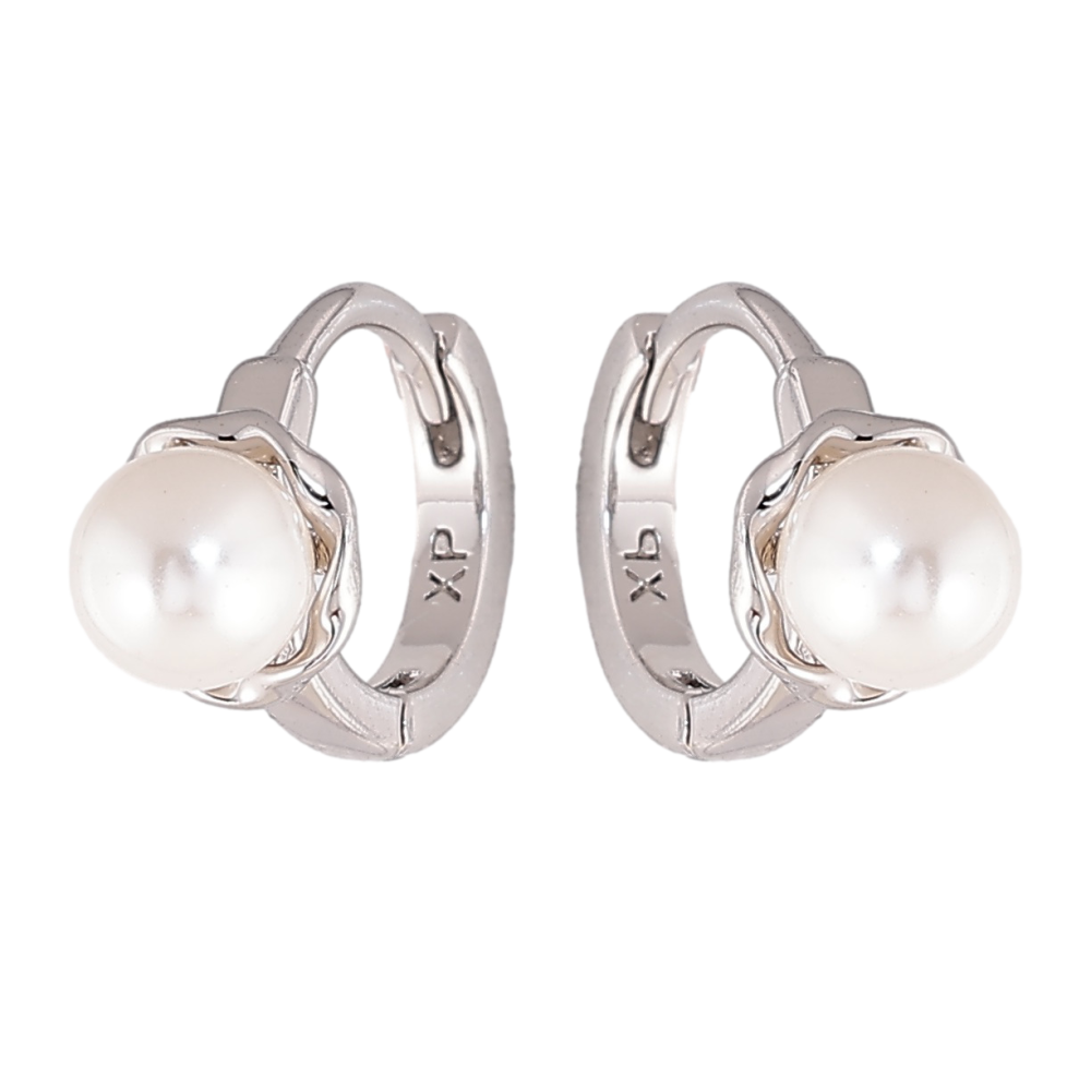 Серьги Xuping цвет Родий колечки Жемчужные цветочки