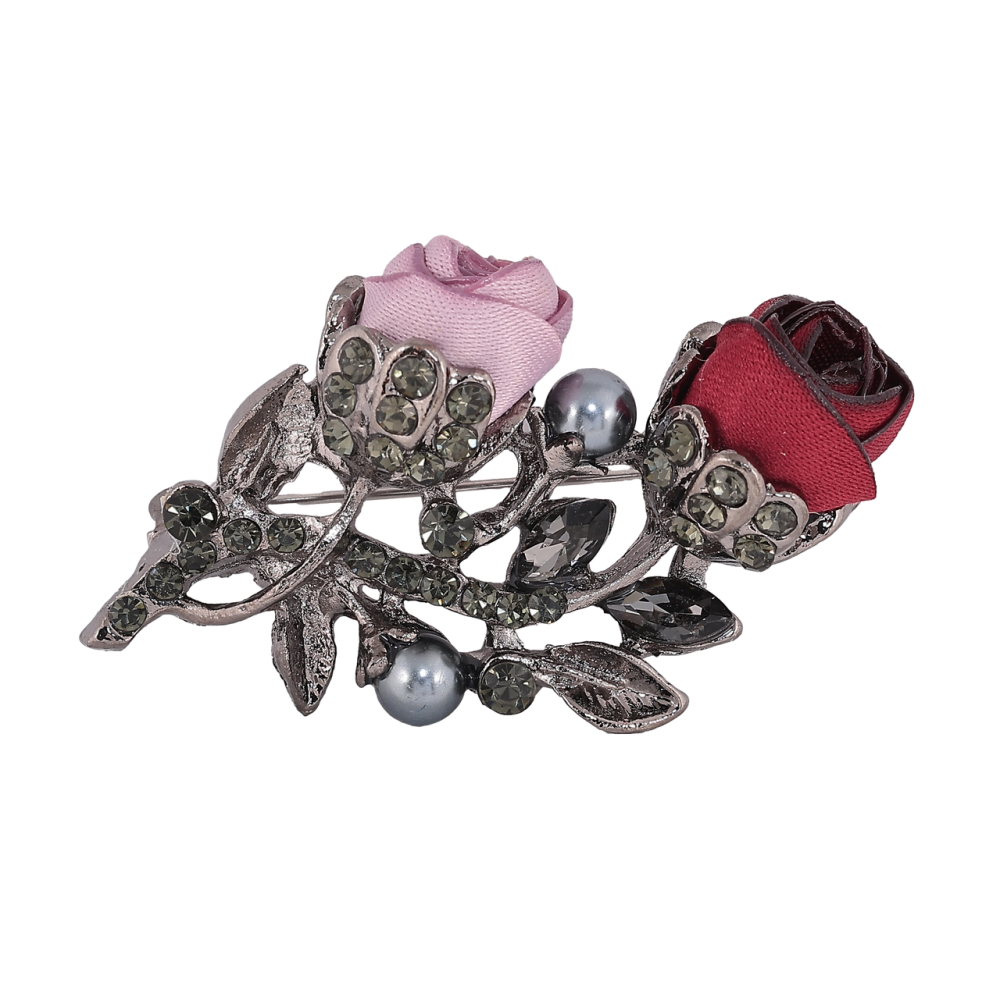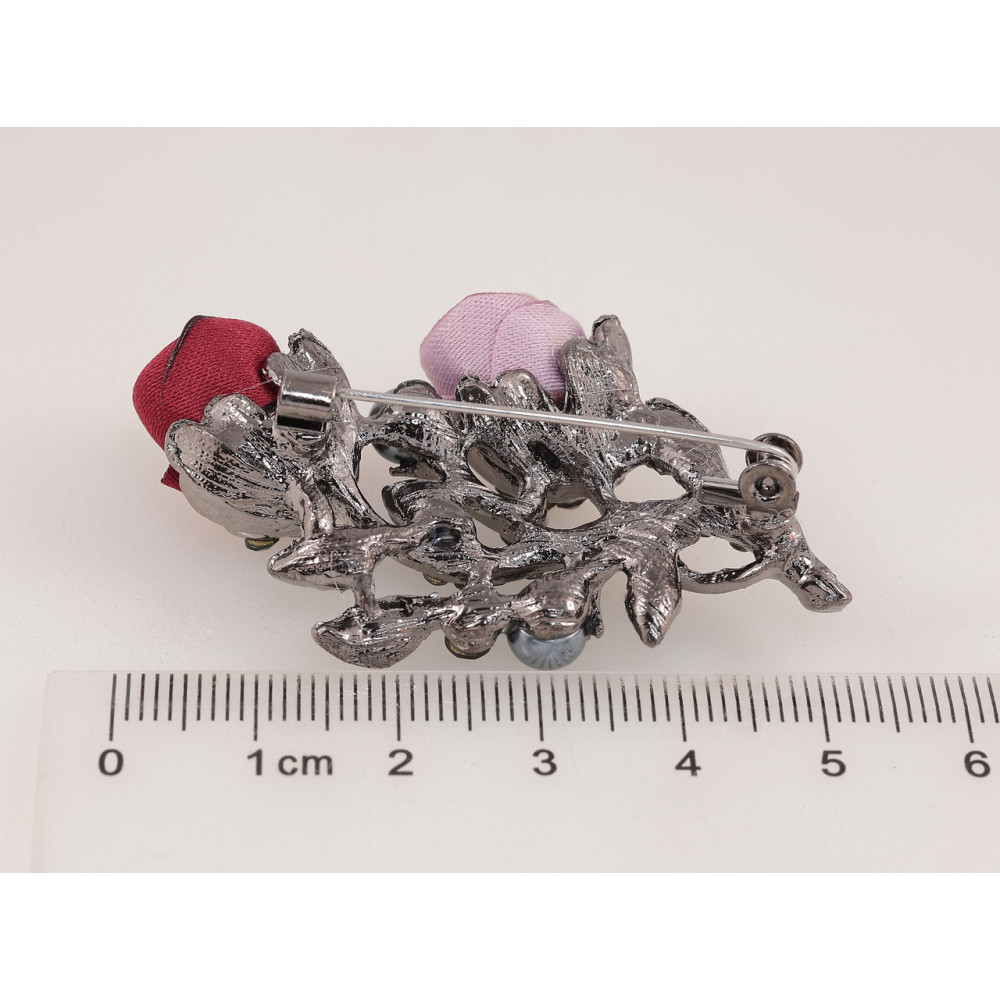 Брошь Розово-Красные цветы со стразами