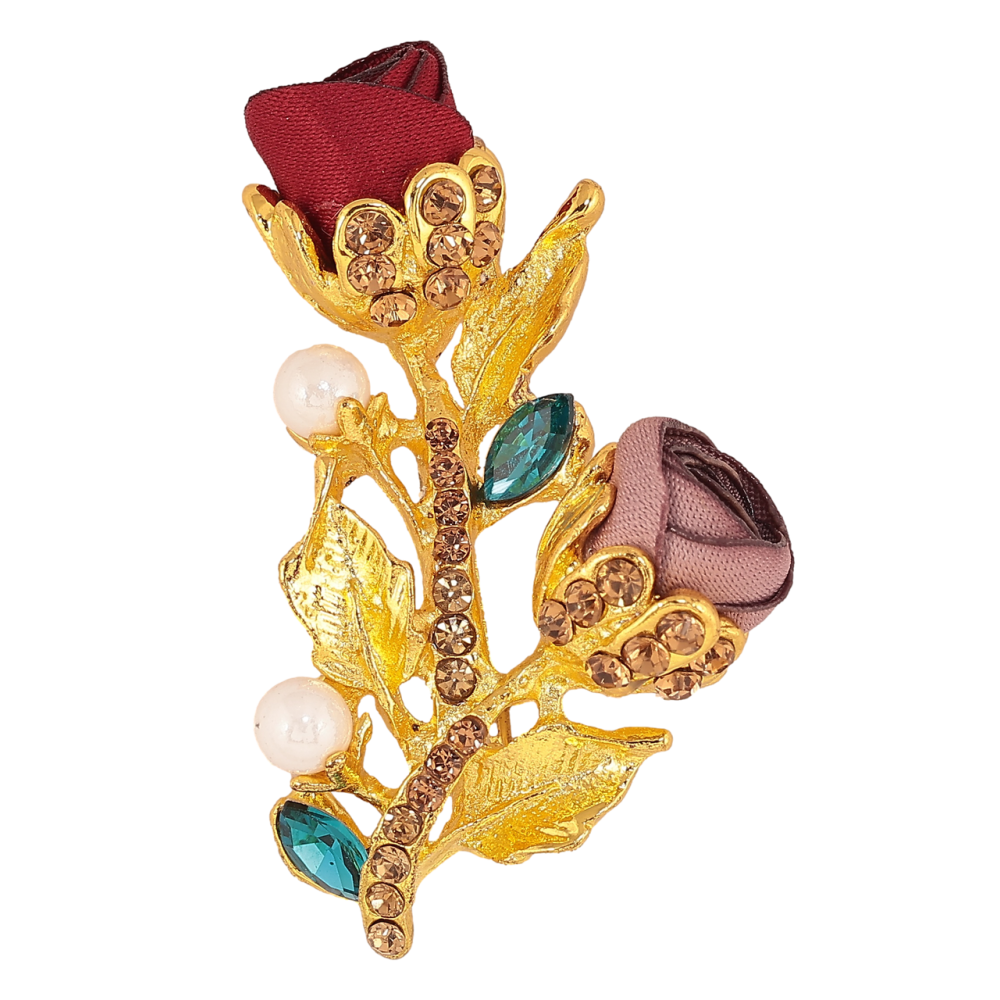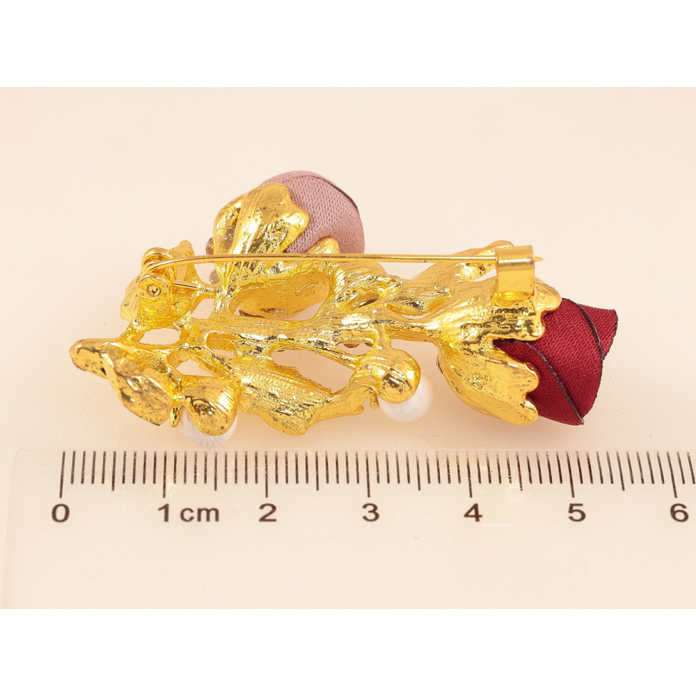 Брошь Бежево-красные цветочки со стразами