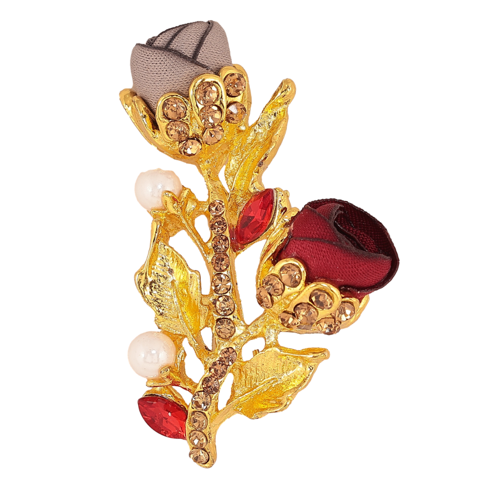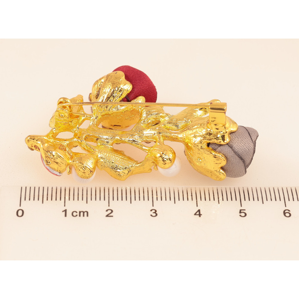 Брошь Бежево-красные цветочки со стразами