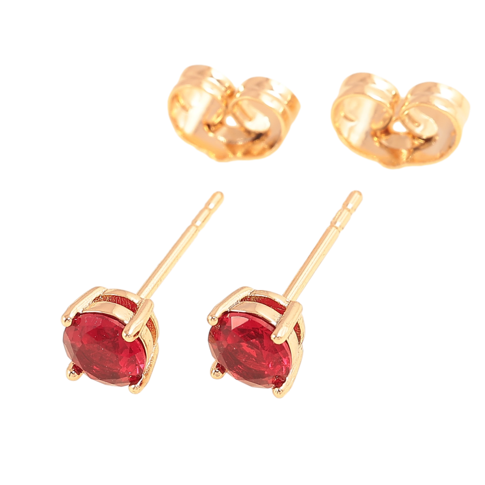 Серьги Xuping цвет позолота 18К пусеты красные кристаллы в 4-х крапановой оправе ø 5мм