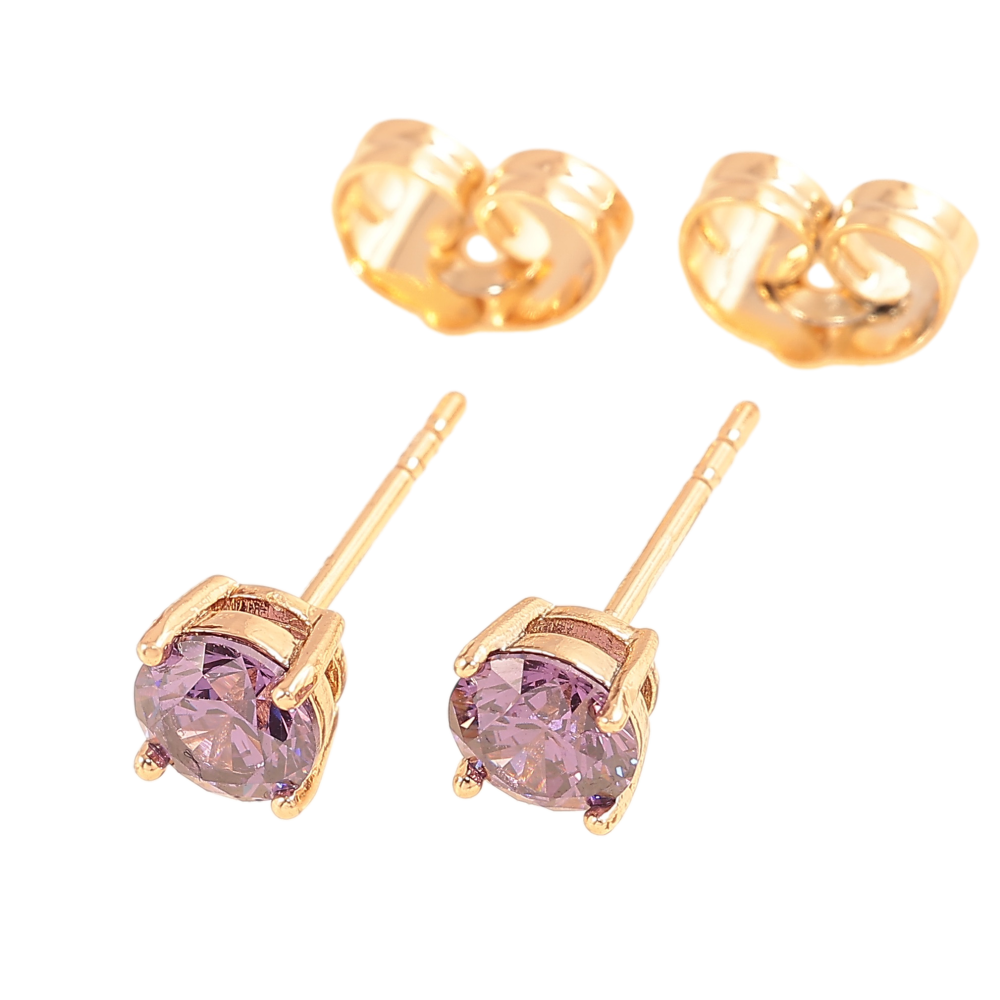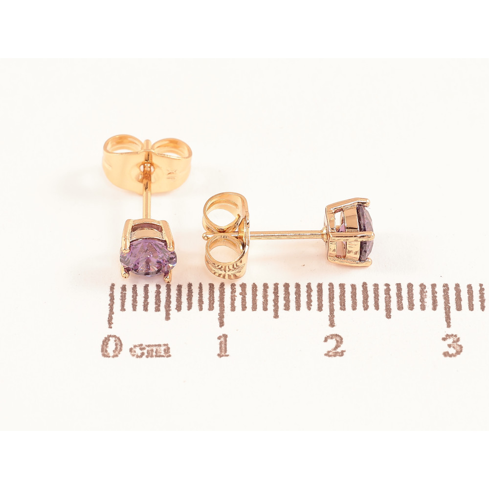 Серьги Xuping цвет позолота 18К пусеты сиреневые кристаллы в 4-х крапановой оправе ø 5мм