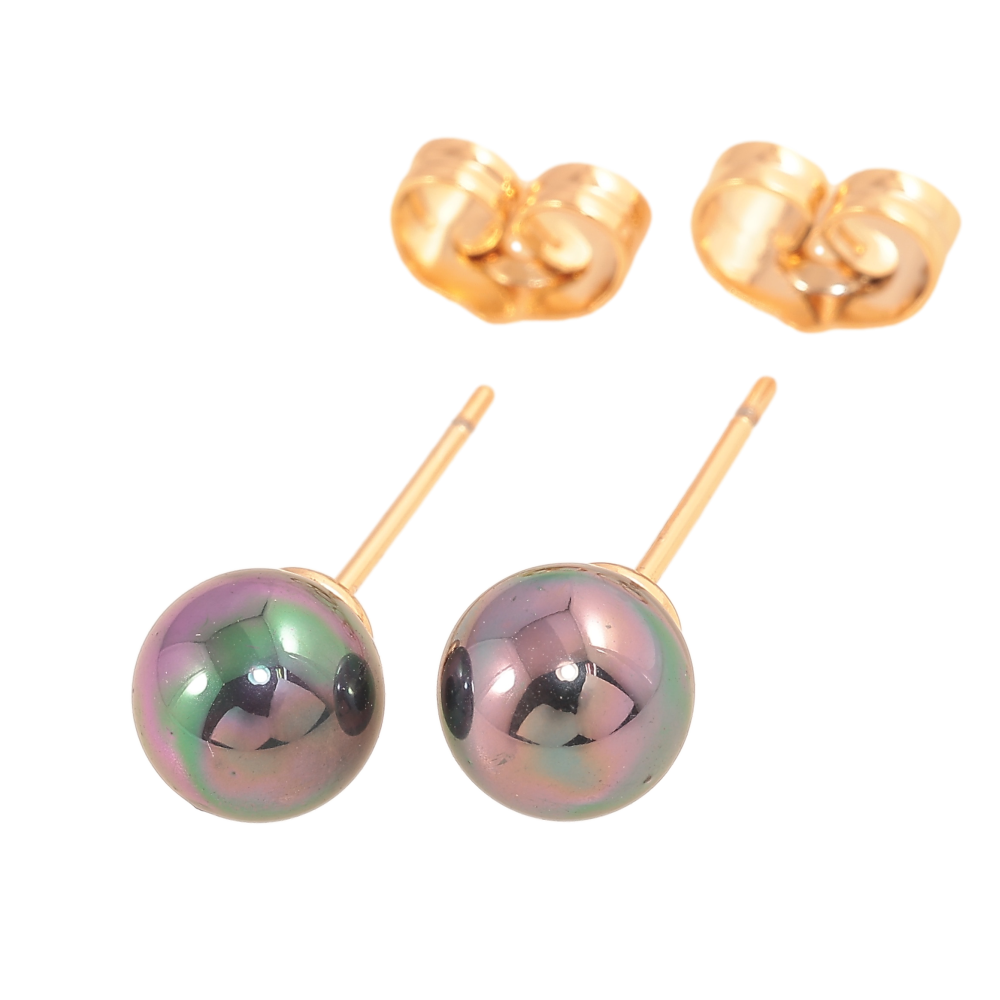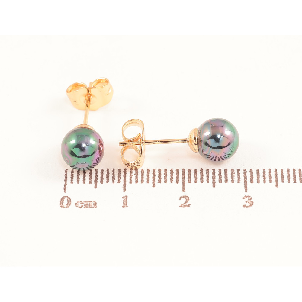 Серьги Xuping цвет позолота 18К пусеты черные жемчужины ø 7мм