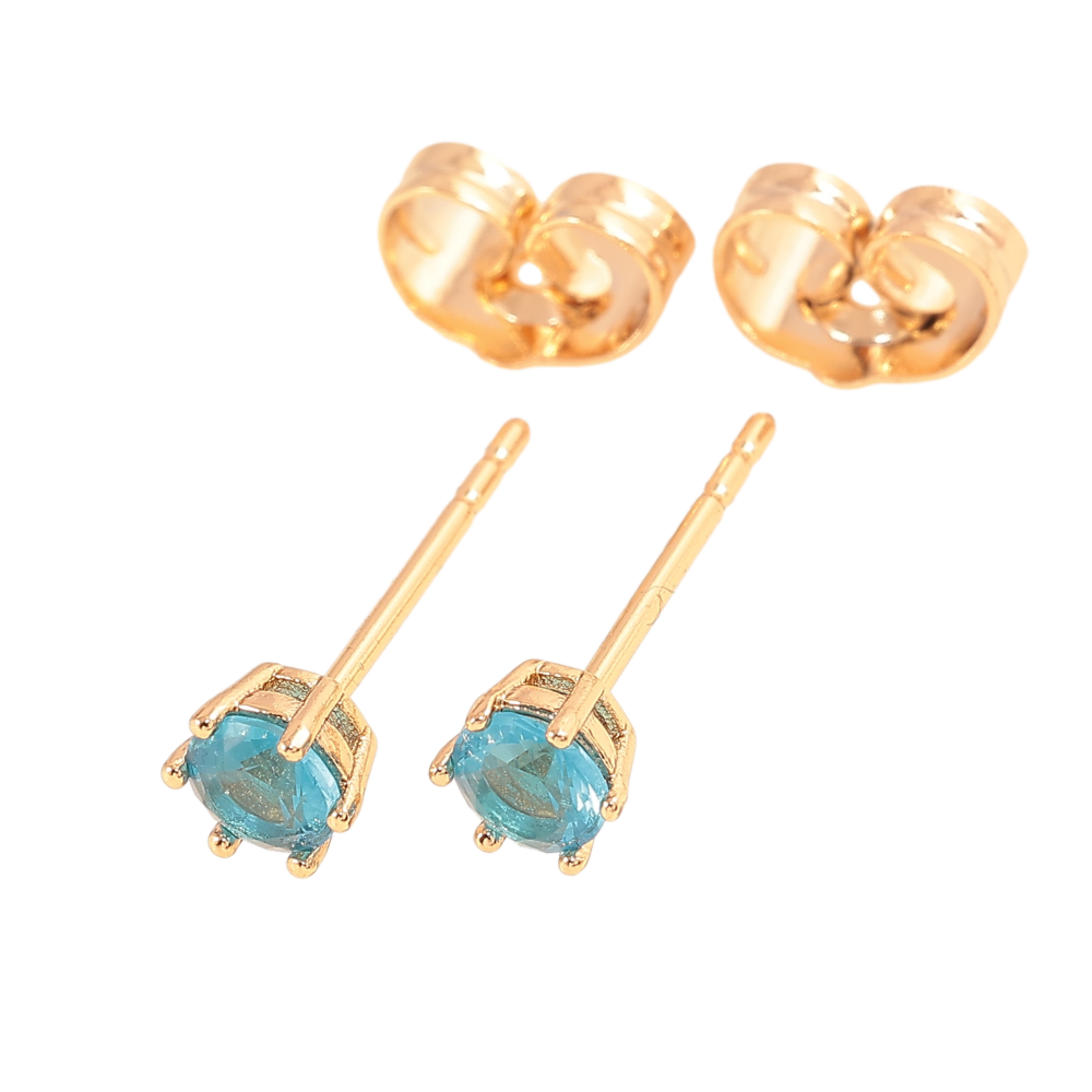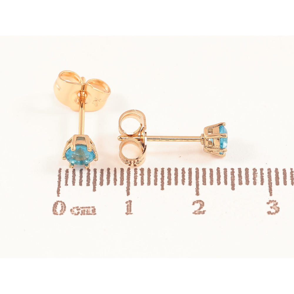 Серьги Xuping цвет позолота 18К пусеты голубые кристаллы в 6-ти крапановой оправе ø 4мм