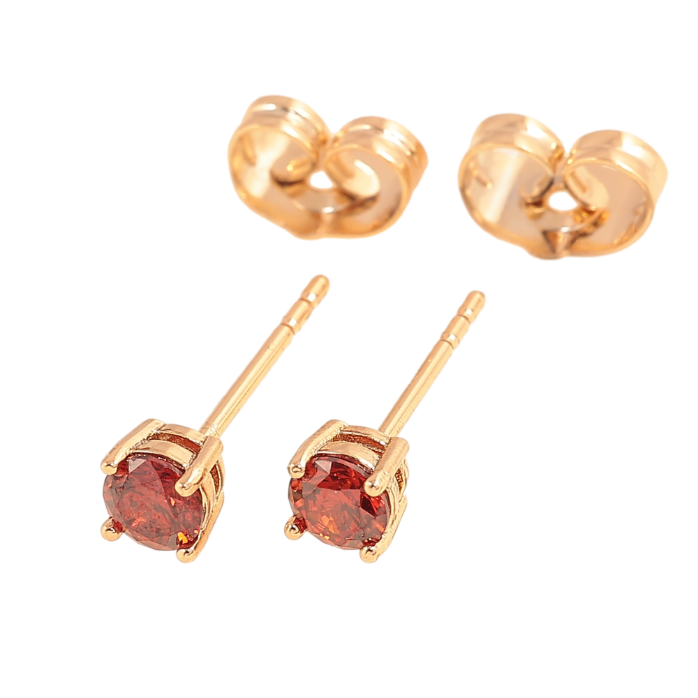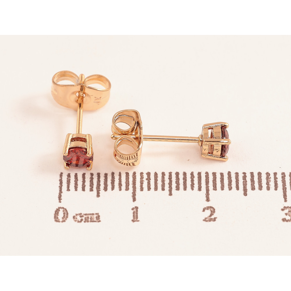 Серьги Xuping цвет позолота 18К пусеты красные кристаллы в 4-х крапановой оправе ø 4мм