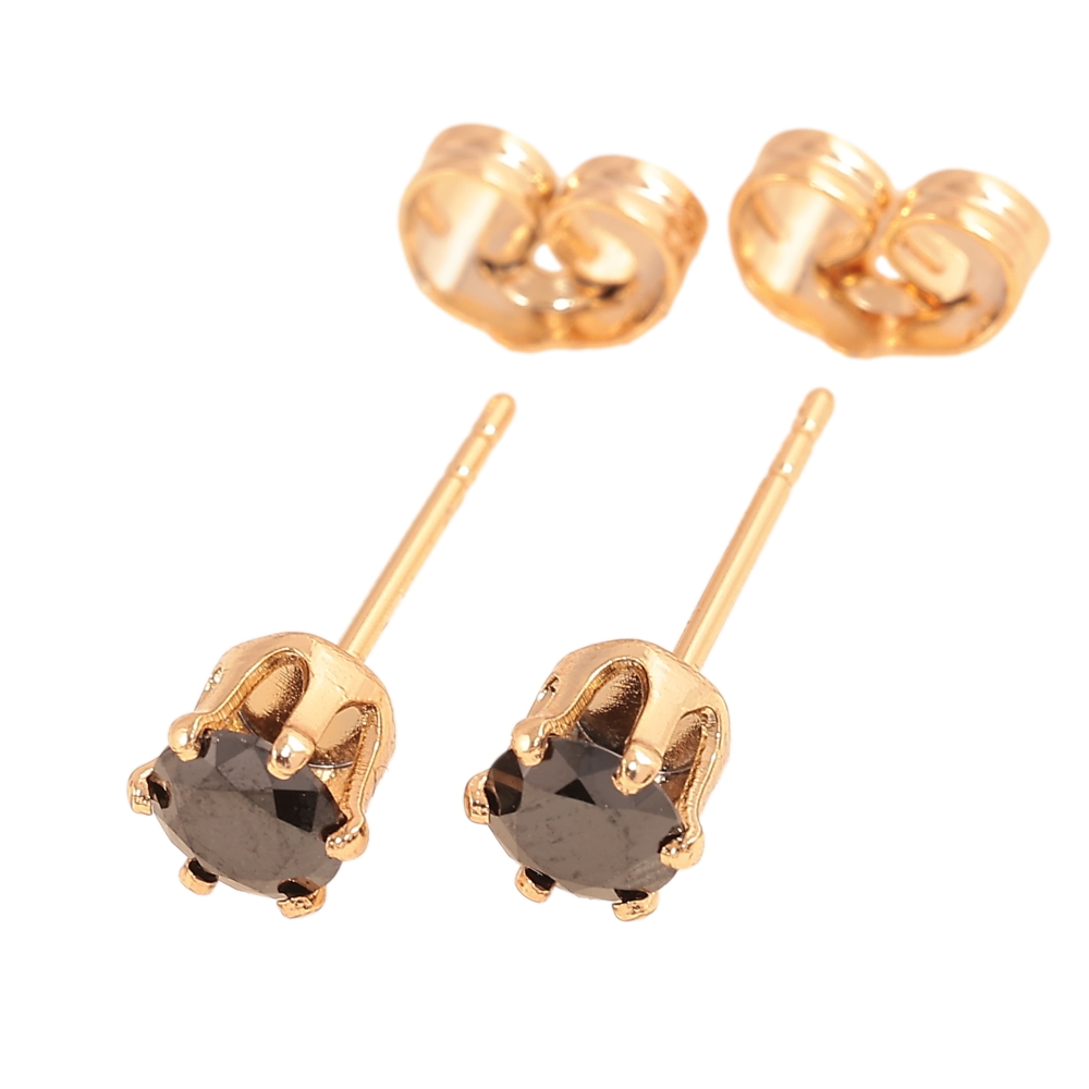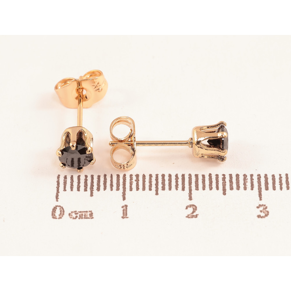 Серьги Xuping цвет позолота 18К пусеты черные кристаллы в 6-ти крапановой оправе ø 5мм