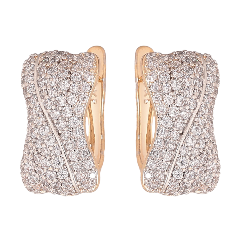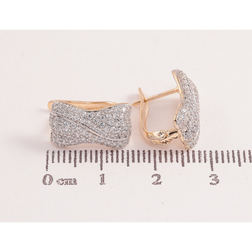 Серьги Xuping цвет позолота 18K + родий английский замок узор с инкрустацией кристаллами фото №1
