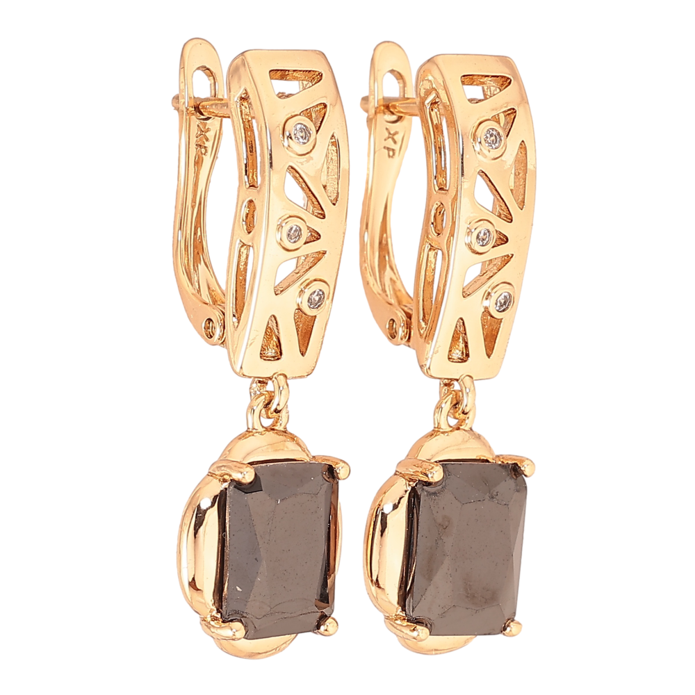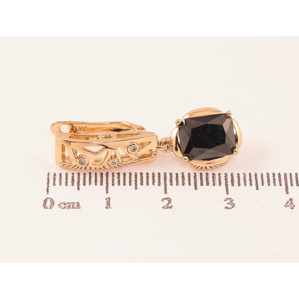 Серьги Xuping цвет Позолота 18K английский замок "Подвески с черными кристаллами"