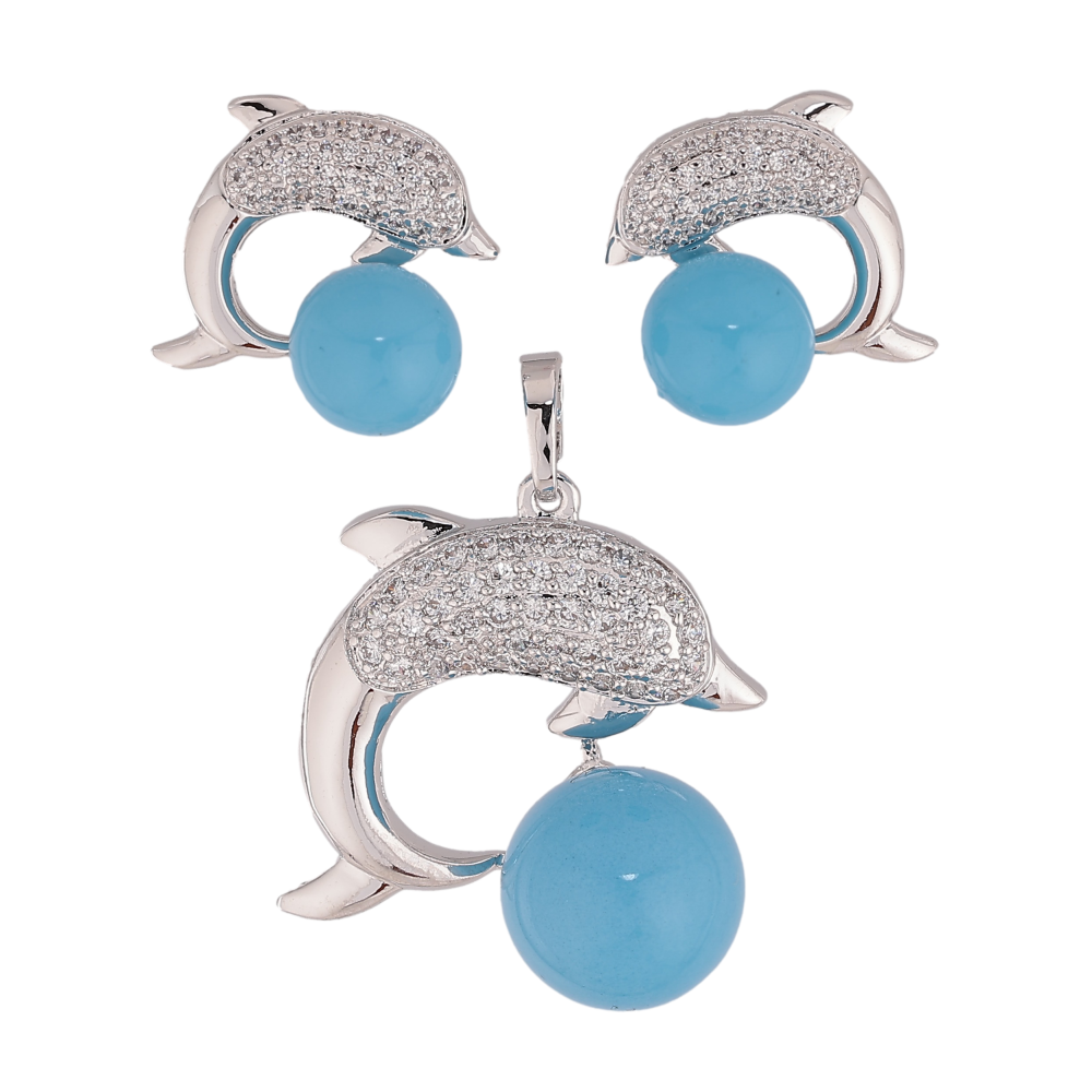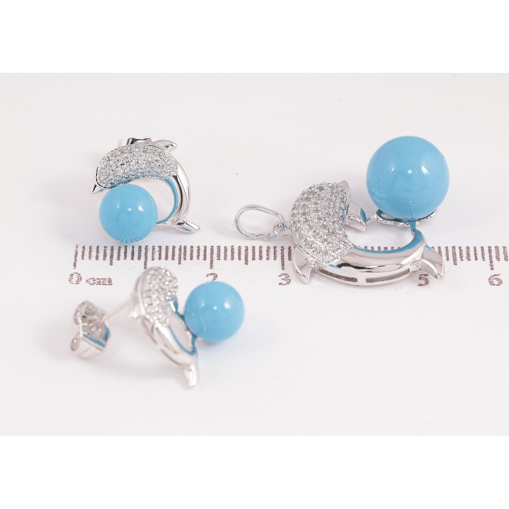 Набор Xuping Родий Серьги Кулон Дельфин с Голубой Бусиной