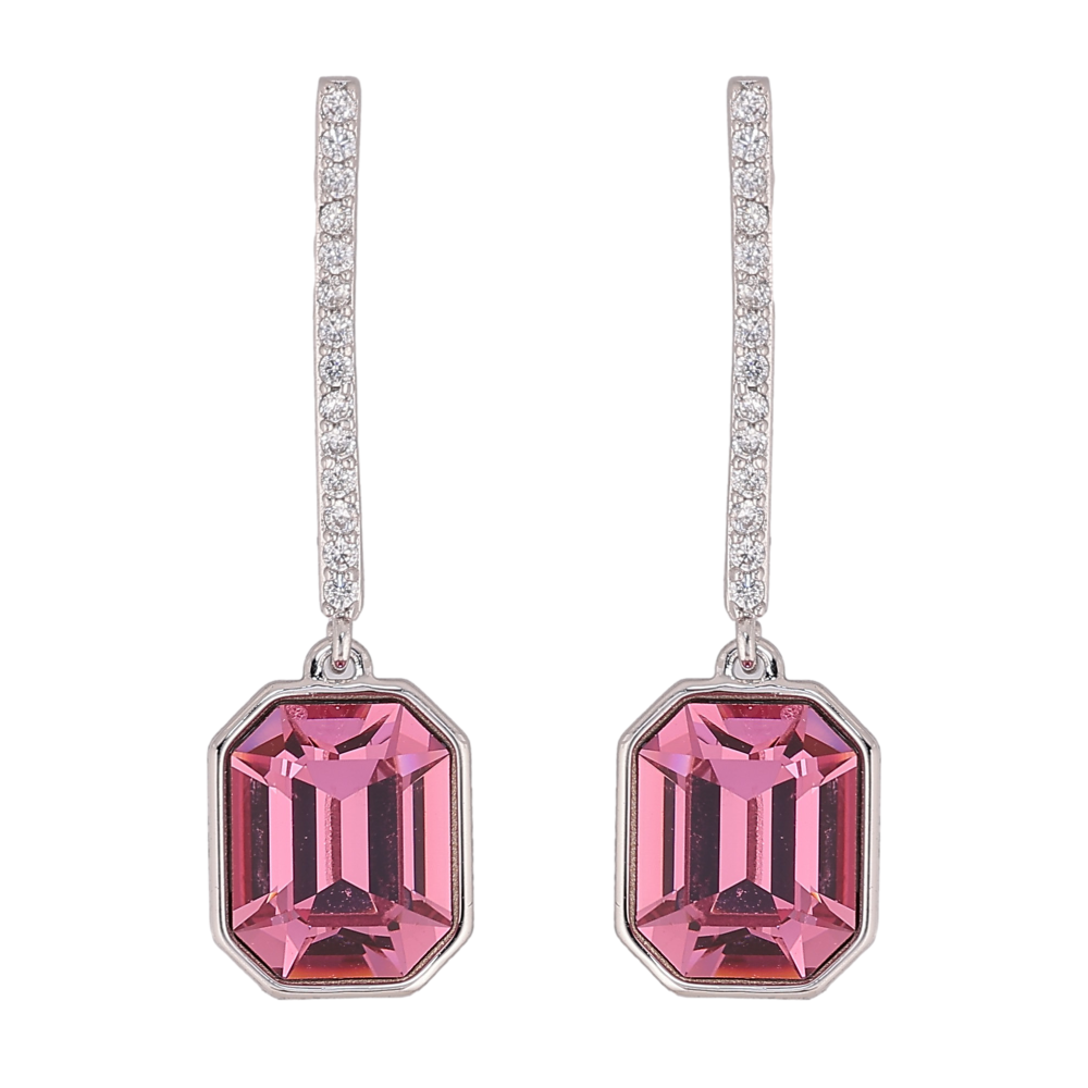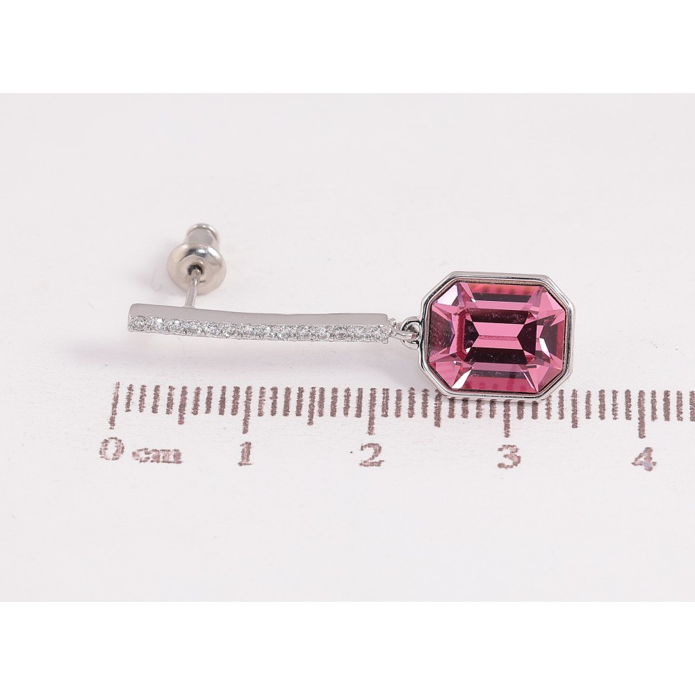 Серьги Xuping цвет Родий с кристаллами Swarovski пусеты "Дорожка с кристаллом Rose"
