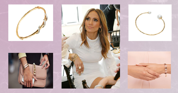 Из всех существующих браслетов в прошлом и нынешнем времени, браслет в форме круга – наиболее популярный. Поговаривают, что в древности носили их не сколько для красоты, сколько в качестве защитного оберега и символа благосостояния. Если для вас важен сакральный смысл украшения (ну вдруг), то тут вы попали точно в цель, так как неразъемное кольцо накапливает и сохраняет энергию, а также несет в себе интонации целостности, гармонии и наполненности. Дженнифер Лопес, например, носит браслеты-баффы не по одному, а сразу по несколько, подчеркивая свои хрупкие запястья. Звезда отдает предпочтение именно крупным, габаритным моделям, а также миксует стили и цвет металла. Берите пример – в 2020 году такой способ носить украшения в моде.