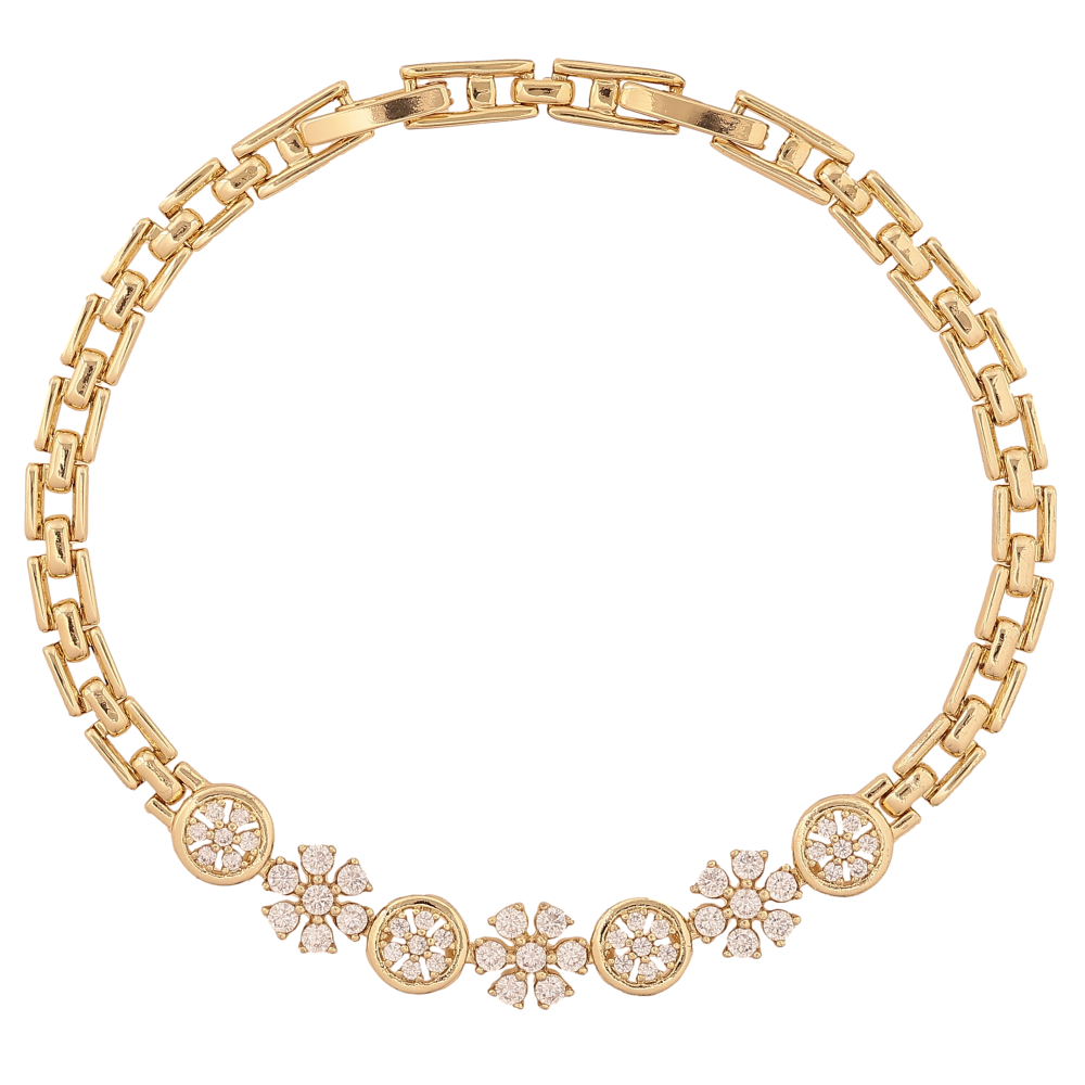 Браслет Xuping цвет Позолота 14K "Узор с кристаллами" размер с доп. замком 17.5,19.5см х 4-7мм
