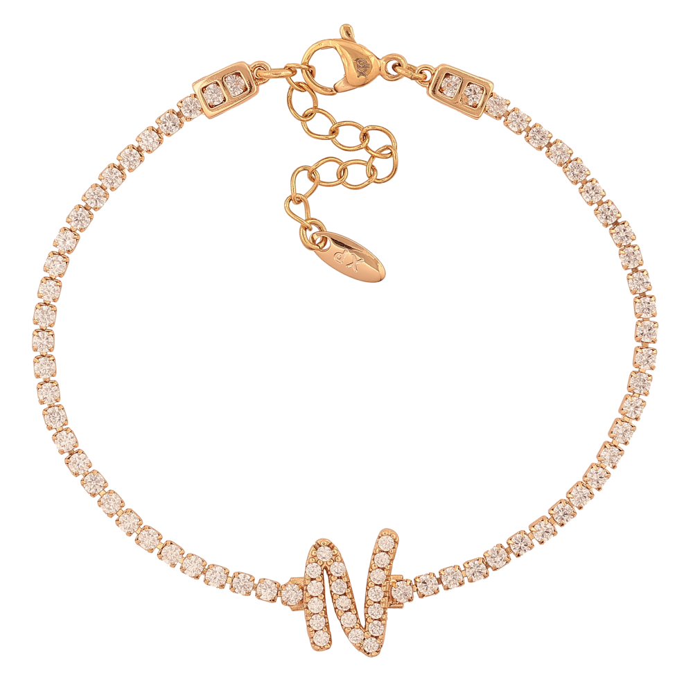 Браслет Xuping цвет Позолота 18K "Дорожка кристаллов с буквой N" размер с доп. цепочкой 17-20см х 2-12мм