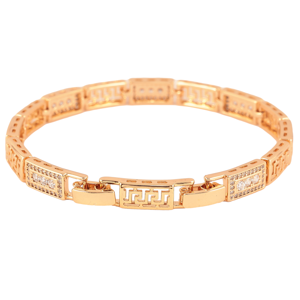 Браслет Xuping цвет Позолота 18К "Греческий узор с инкрустацией кристаллами" размер с доп. замком 17,19.5см х 5мм