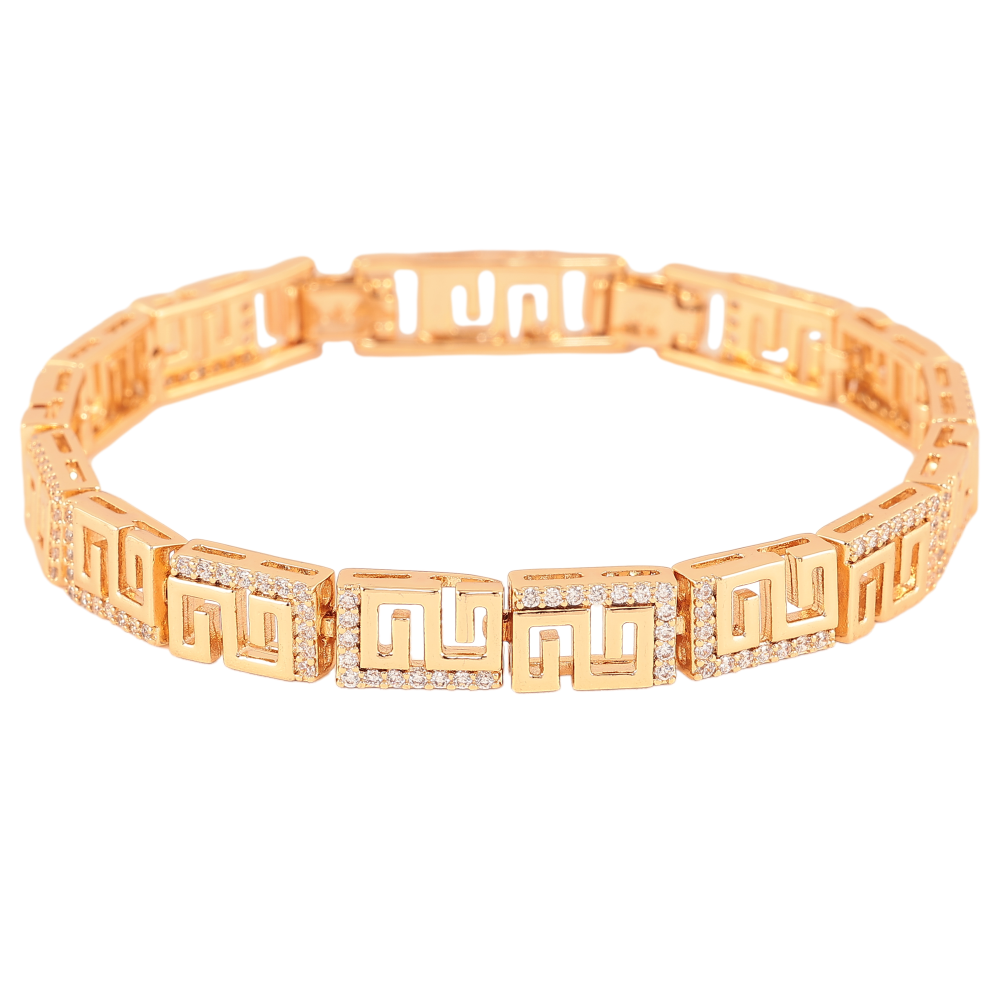 Браслет Xuping цвет Позолота 18К "Греческий узор с кристаллами" размер с доп. замком 17,19.5см х 8мм