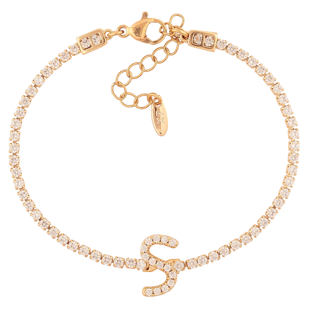 Браслет Xuping цвет Позолота 18K "Кристальная дорожка с буквой S" размер с доп. цепочкой 17-20.5см х 2-13мм