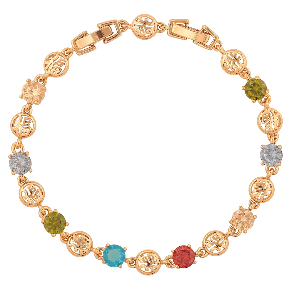 Браслет Xuping цвет Позолота 18К "Китайские иероглифы с разноцветными кристаллами" размер с доп. замком 18.5,21см х 5-7мм