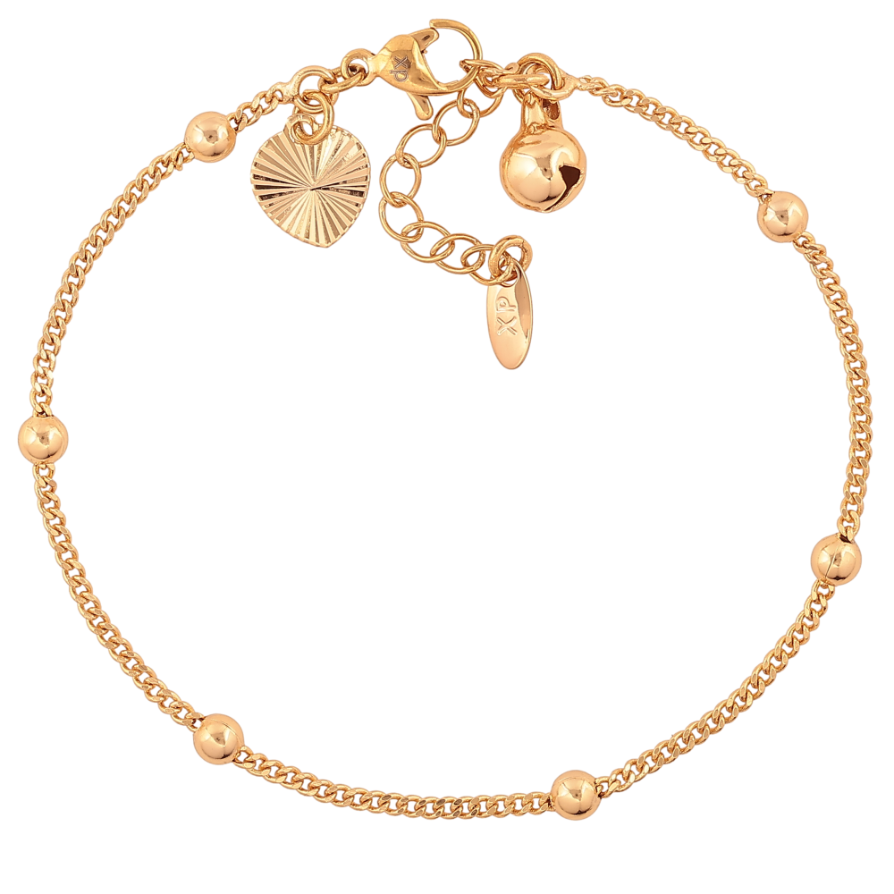 Браслет Xuping цвет Позолота 18K "Цепочка Панцирная с бусинами" размер с доп. цепочкой 18-21см х 2-4мм