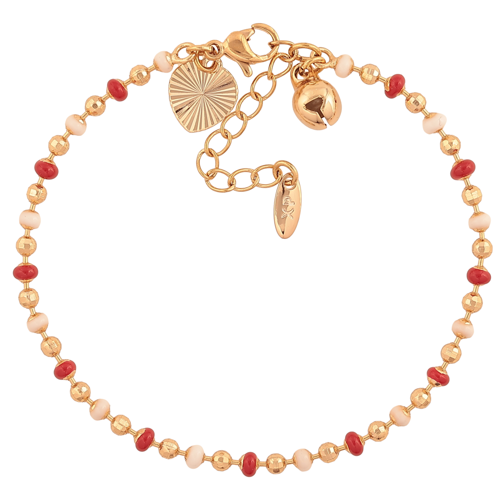 Браслет Xuping цвет Позолота 18K "Цепочка Перлина с красной и белой эмалью" размер с доп. цепочкой 17-20см х 3мм