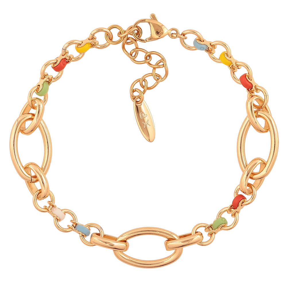 Браслет Xuping цвет Позолота 18K "Цепочка с разноцветными бусинами" размер с доп. цепочкой 19.5-23см х 2-11мм