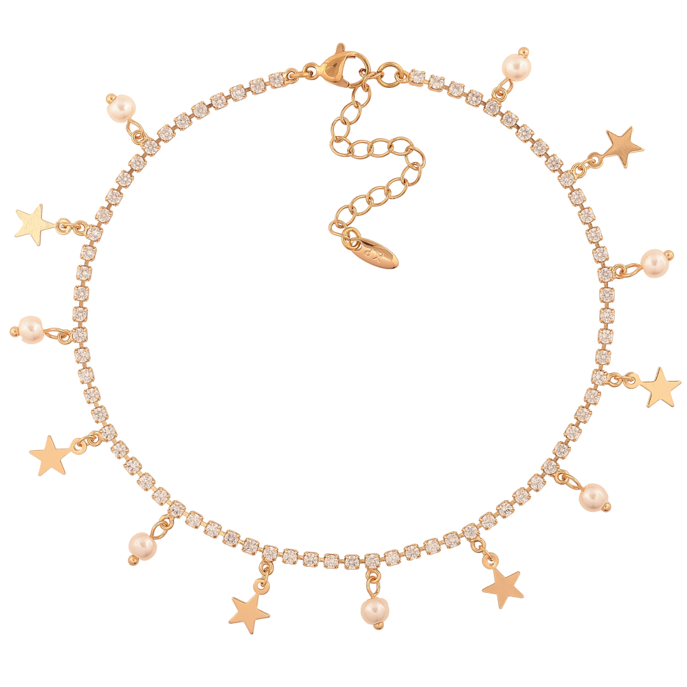Браслет Xuping цвет Позолота 18K на ногу "Кристальная дорожка с подвесками" размер с доп.цепочкой 24-29см х 2мм