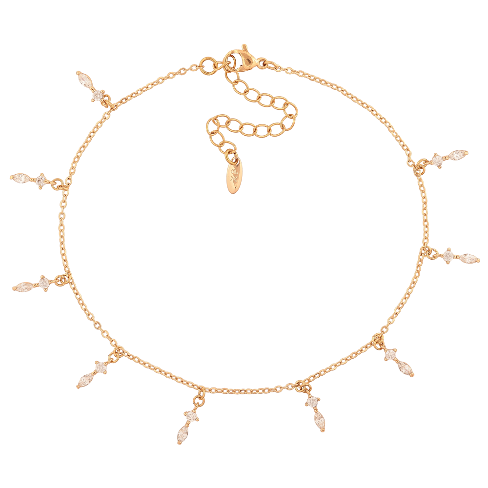 Браслет Xuping цвет Позолота 18K на ногу "Цепочка с кристальными подвесками" размер с доп.цепочкой 23-28см х 1.5мм