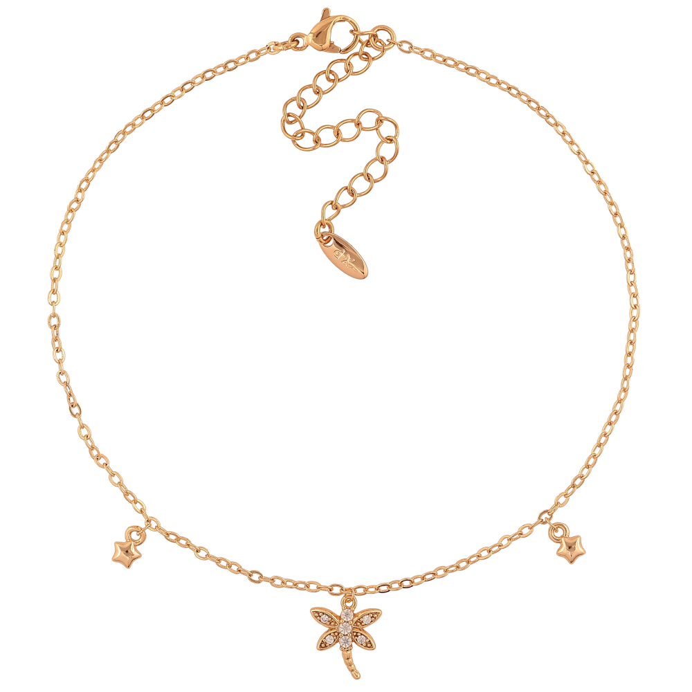 Браслет Xuping цвет Позолота 18K на ногу "Цепочка с подвесками стрекоза" размер с доп.цепочкой 23-28см х 1.5мм