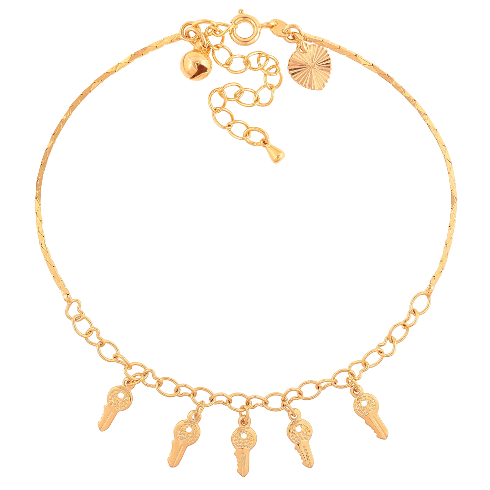 Браслет Xuping цвет Позолота 18K на ногу "Цепочка с подвесками ключиками" размер с доп. цепочкой 24-29см х 1-4мм