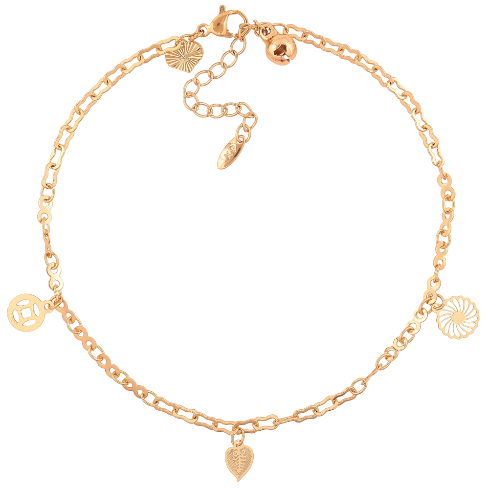 Браслет Xuping цвет Позолота 18K на ногу "Цепочка с подвесками" размер с доп.цепочкой 24-29см х 3мм