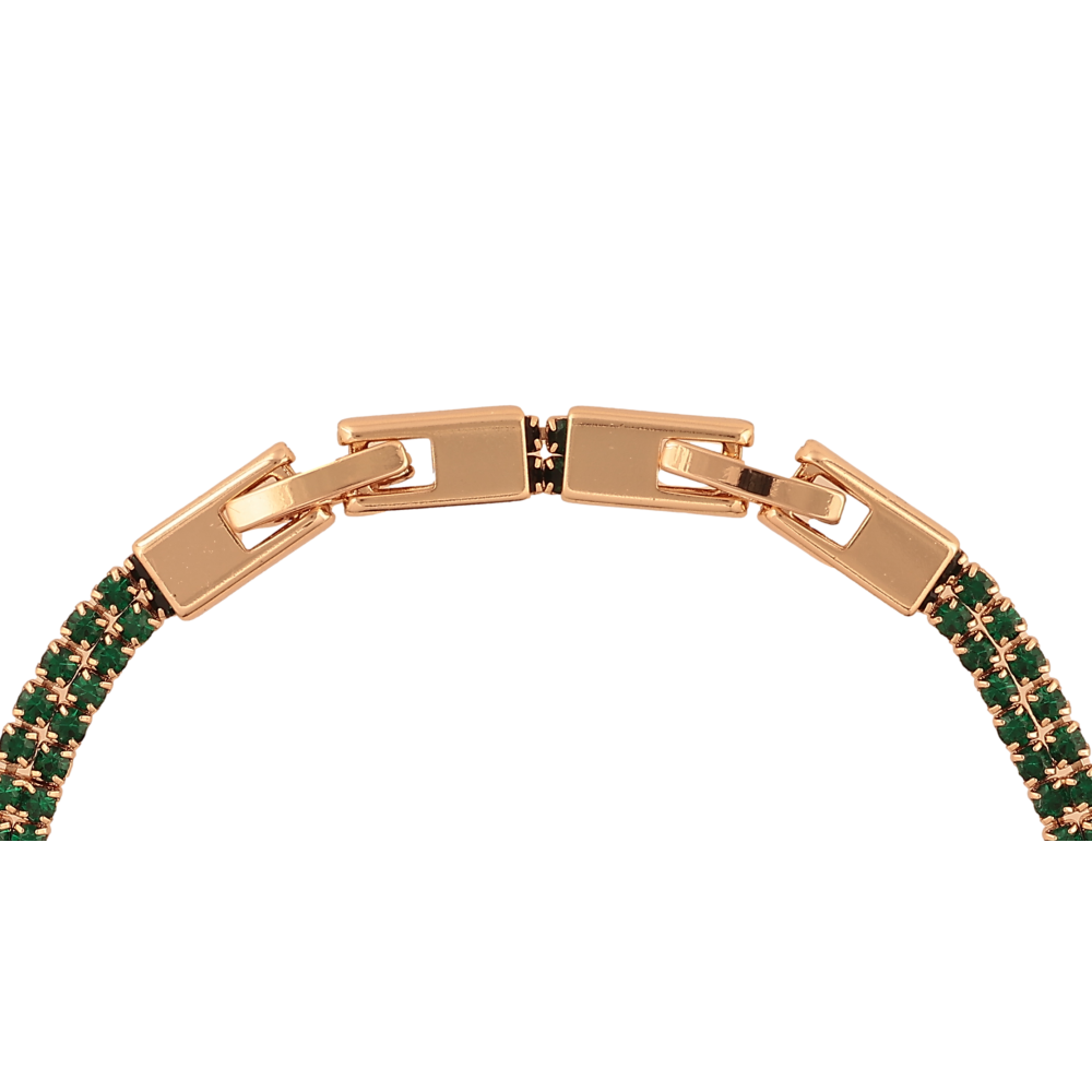 Браслет Xuping цвет Позолота 18K "Двойная дорожка зеленых кристаллов" размер с доп. замком 17,19см х 4мм