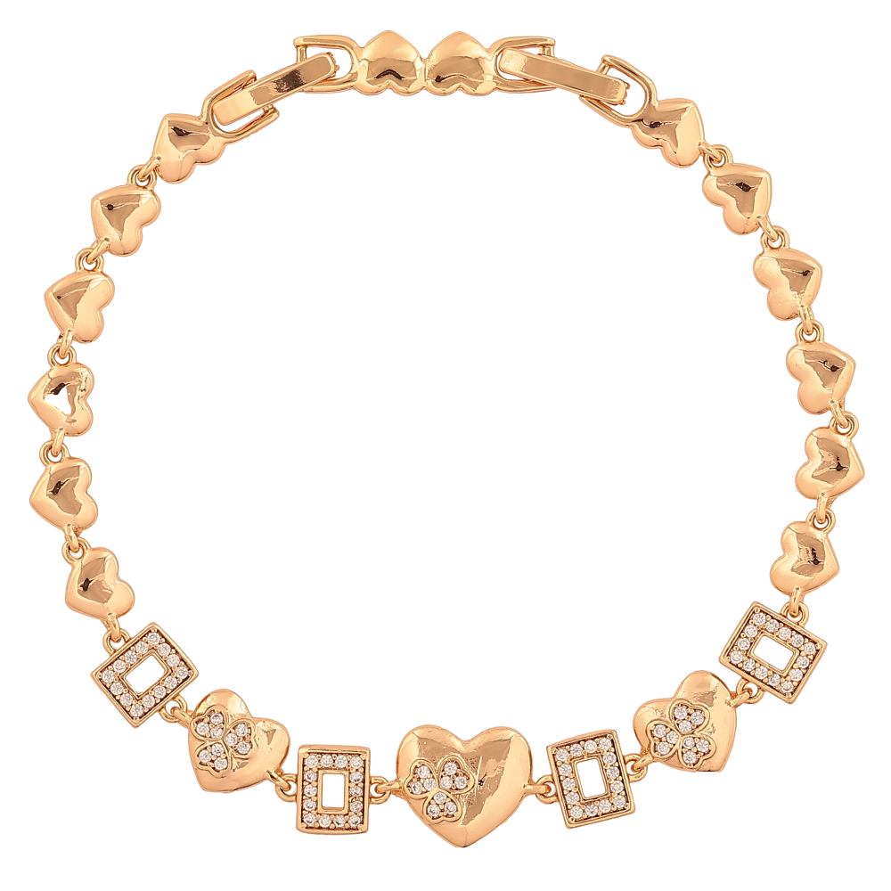 Браслет Xuping цвет Позолота 18K "Узор сердечки с кристаллами" размер с доп. замком 17, 19см х 5-10мм