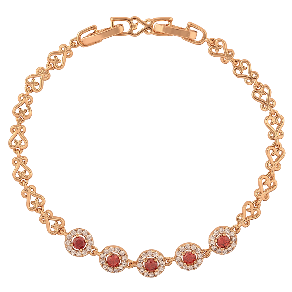 Браслет Xuping цвет Позолота 18K "Узор с красными кристаллами" размер с доп. замком 17,19см х 5-7мм