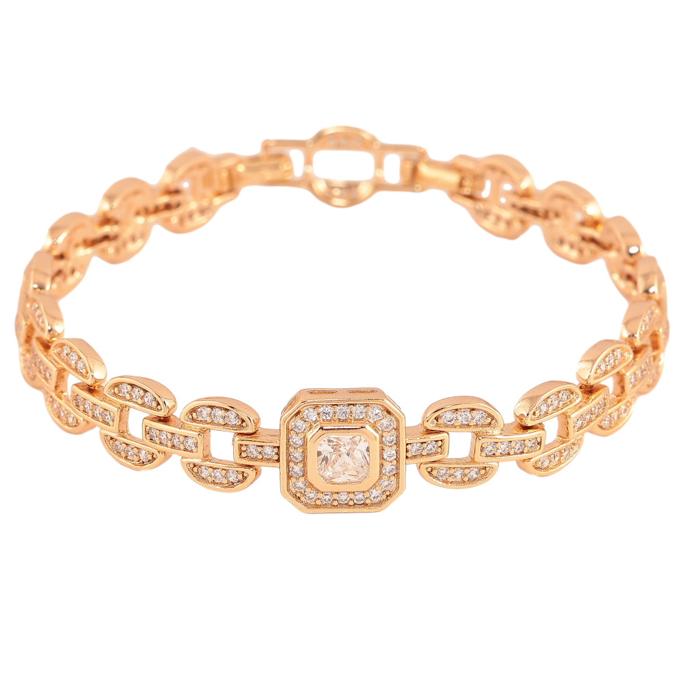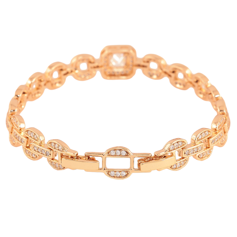 Браслет Xuping цвет Позолота 18K "Узор с кристаллами" размер с доп. замком 17.5,19.5см х 3-11мм