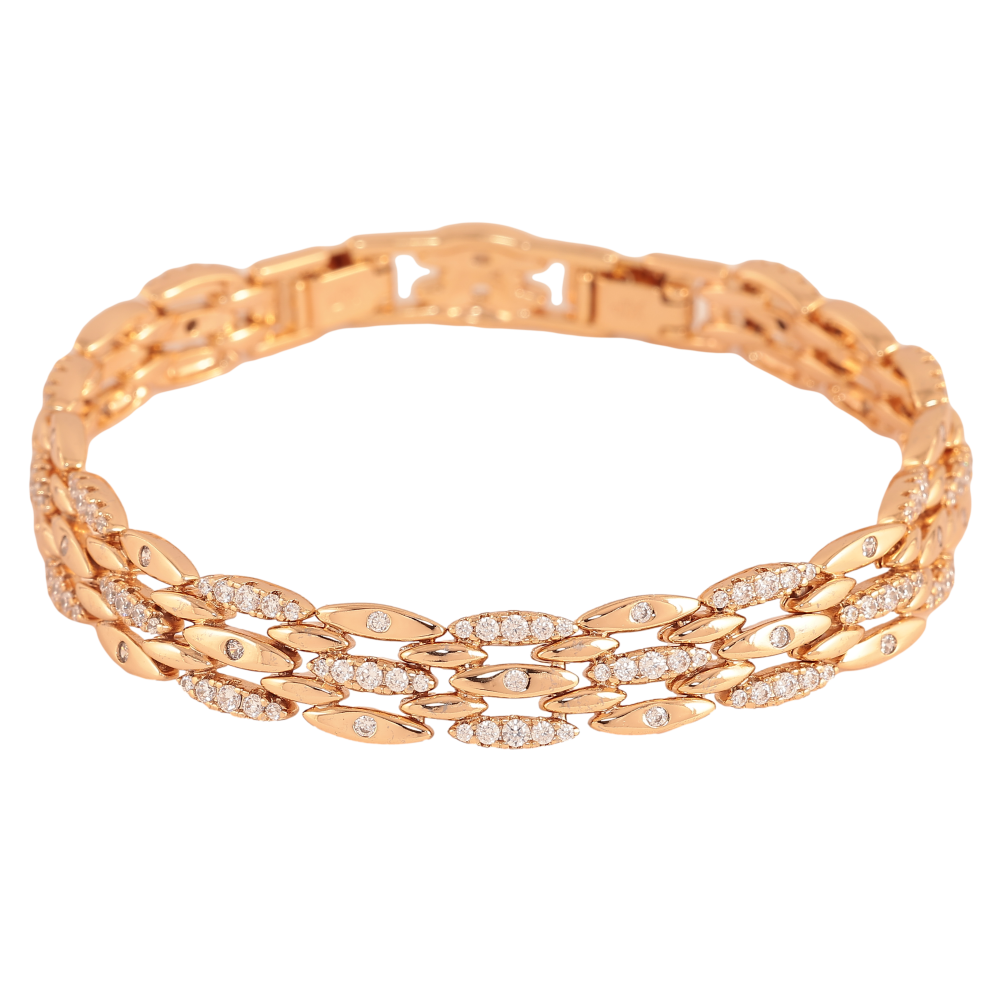 Браслет Xuping цвет Позолота 18K "Узор с кристаллами" размер с доп. замком 17.5,19.5см х 9мм