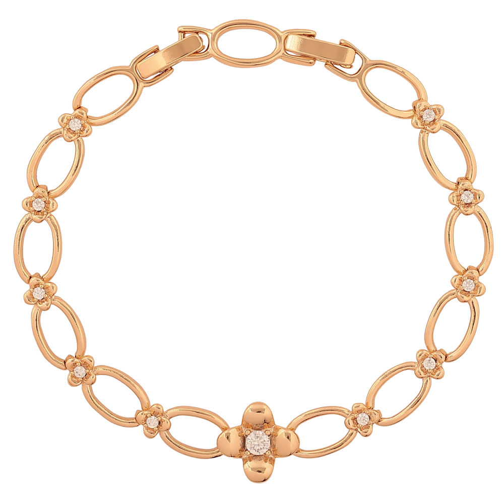 Браслет Xuping цвет Позолота 18K "Узор с цветочком и кристаллами" длинна с доп. замком 17.5,19.5см х 5-12мм