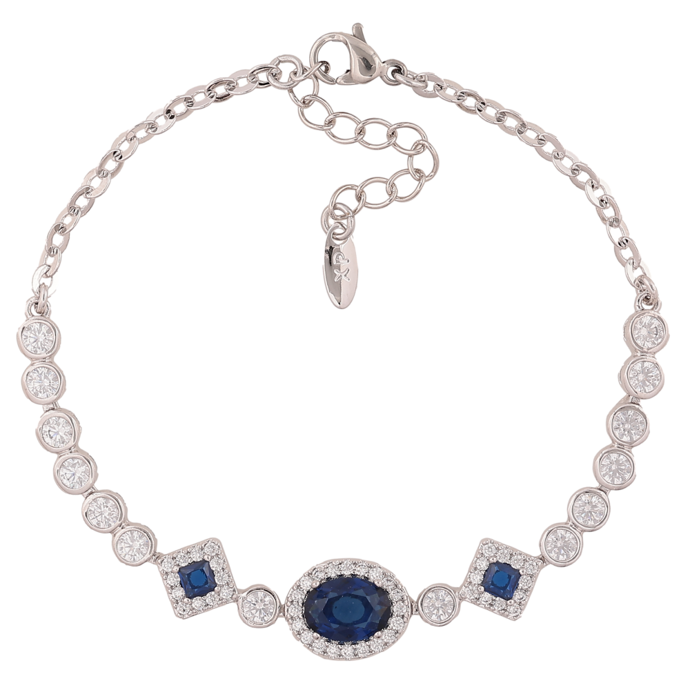 Браслет Xuping цвет Родий "Инкрустация с синими кристаллами" длина с доп. цепочкой 17-20см х 3-9мм